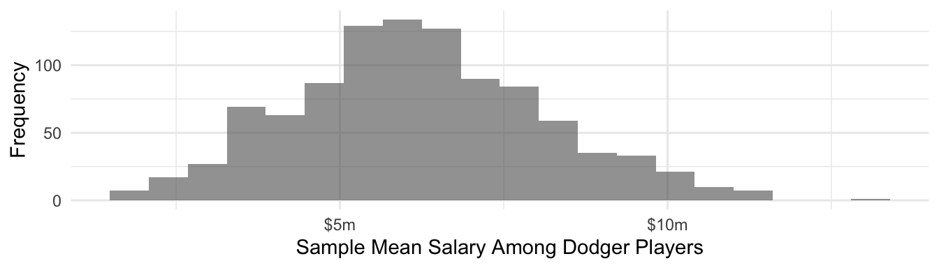 We calculate the mean salary among the sampled Dodgers to be $3.8 million. How much should we trust this estimate?