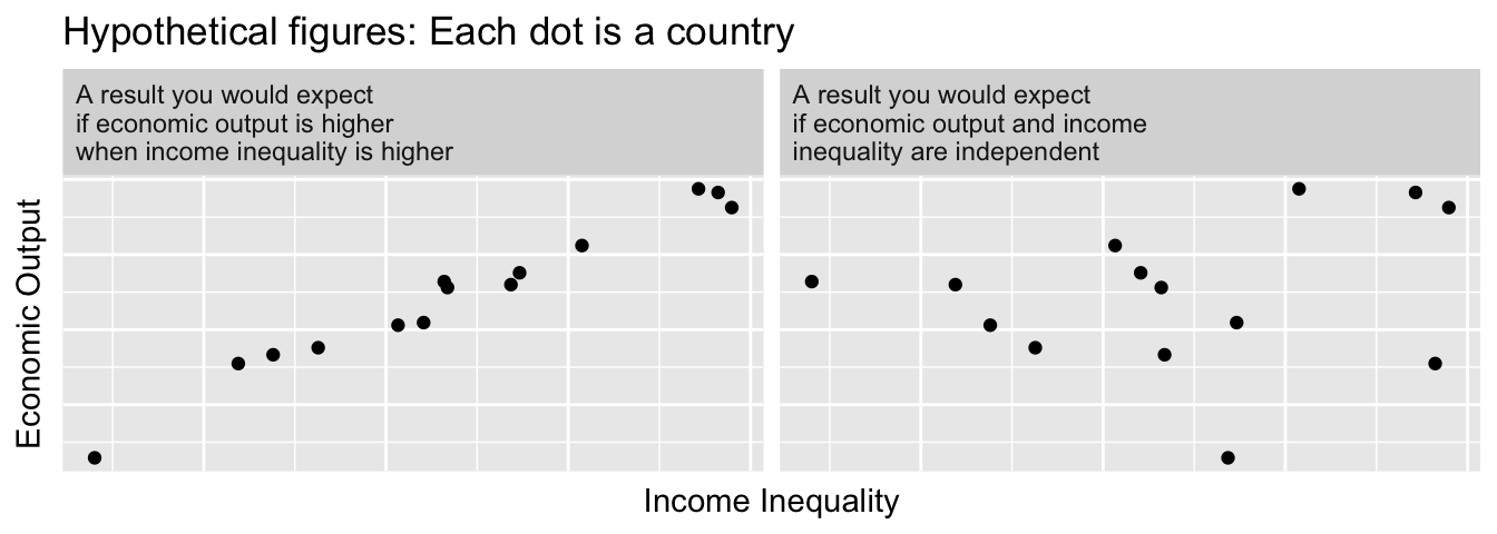 To begin answering this question, we first have to define measures of economic output (the \(y\)-axis) and inequality (the \(x\)-axis).