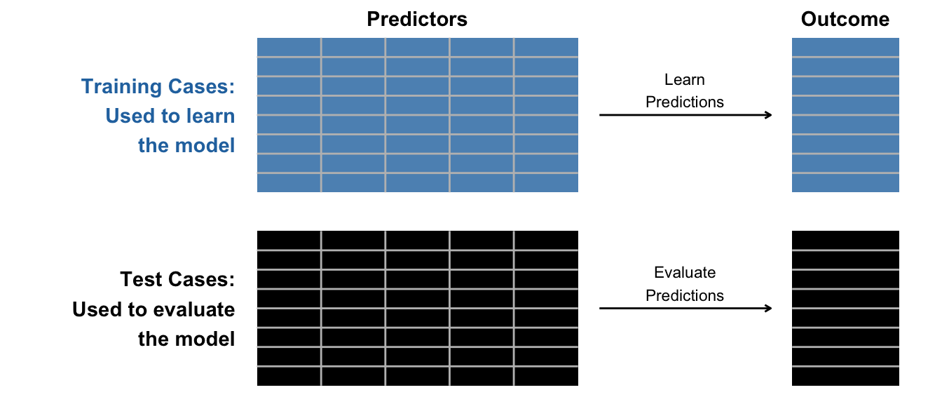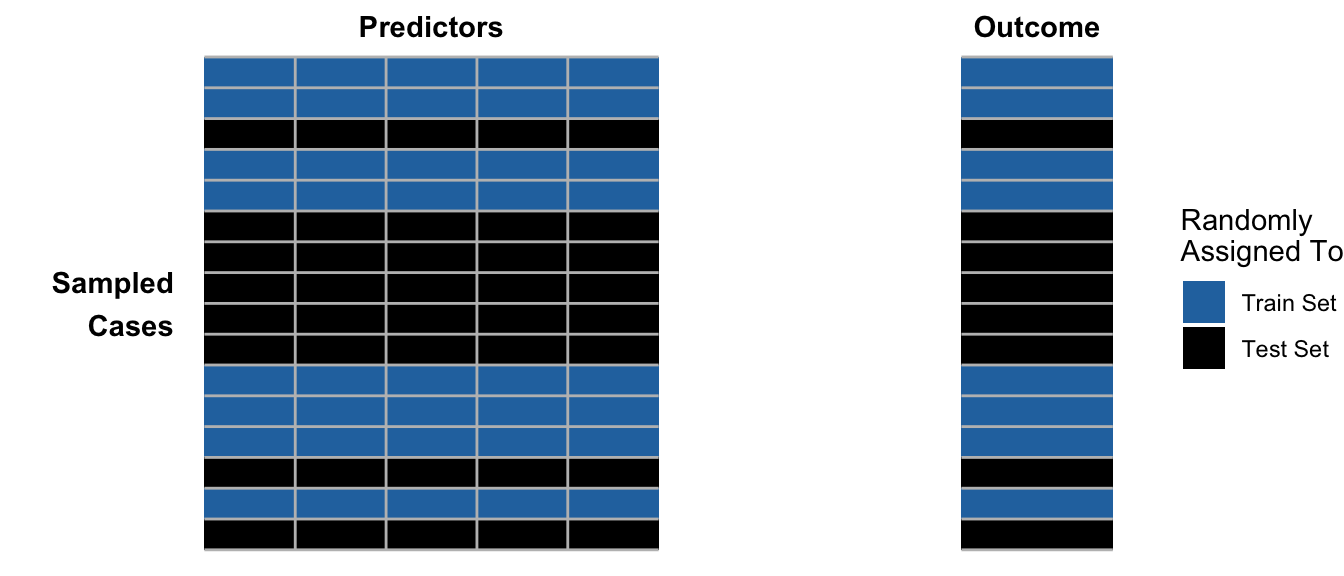 Visually, we begin by randomly assigning cases into training or test sets.